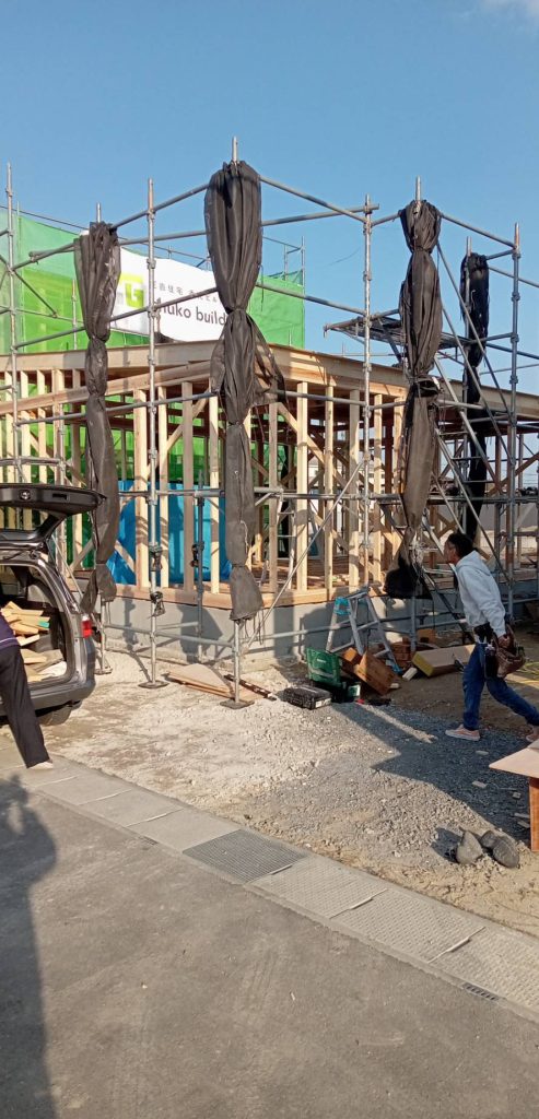 今回の写真は平家の棟上げの写真になります。
